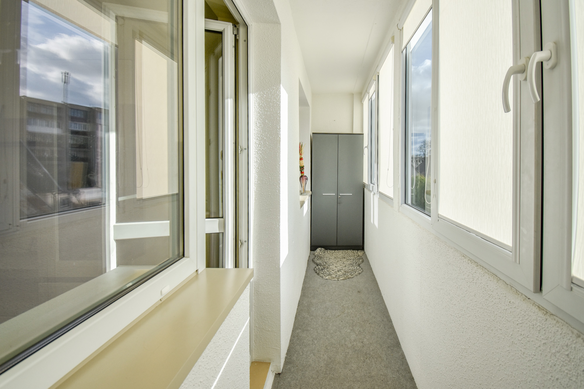 Balkonas – įstiklintas plastikiniais langais (5,5 m ilgio).